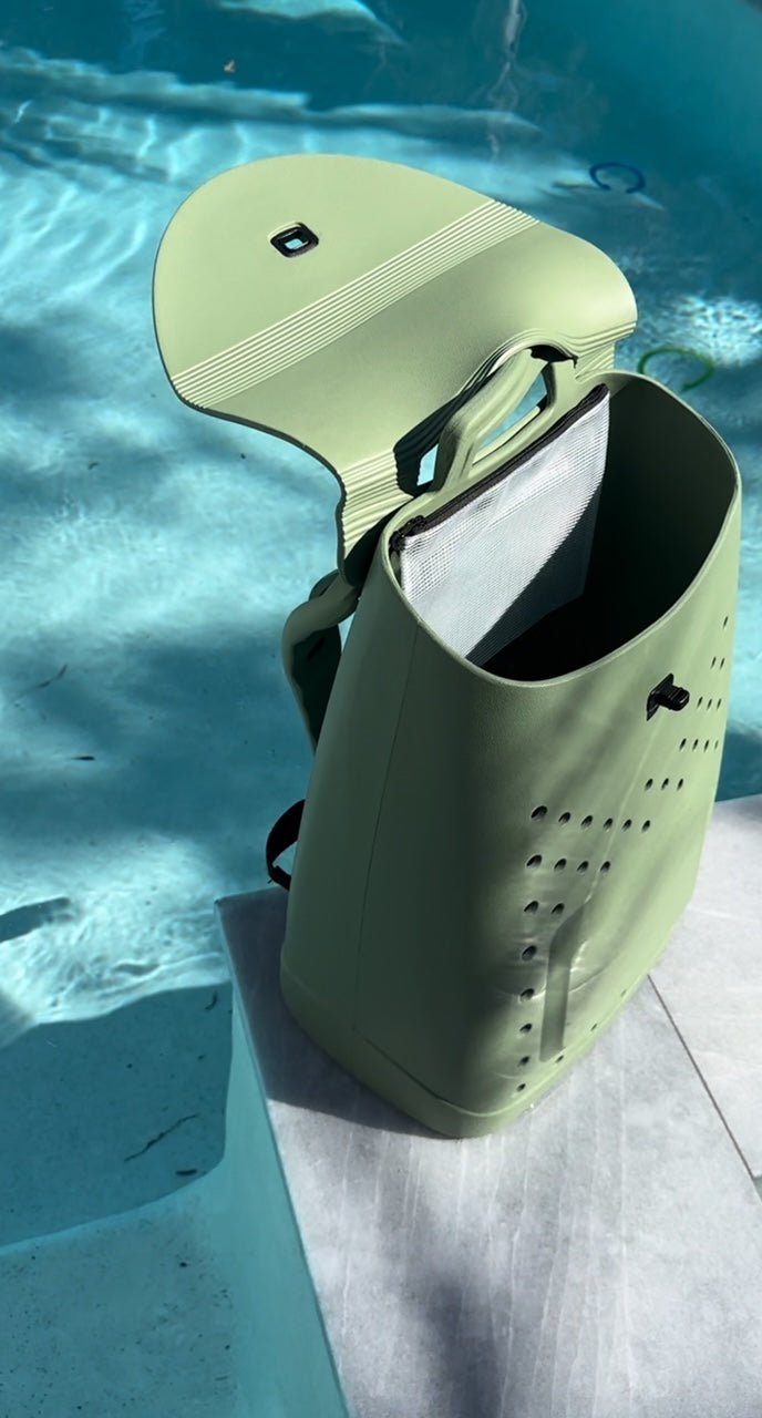WODA bag is an exceptionally durable yet lightweight backpack constructed of a waterproof material that is resistant to mold and mildew. It is made out of a non-toxic EVA foam, which is soft and flexible yet is designed to stand up independently. Additionally, it offers a large carrying capacity up to 30lbs, a lockable top cover, removable interior zipper pouch, and adjustable straps. The material is quick-drying allowing for you to get back out there and carry on!